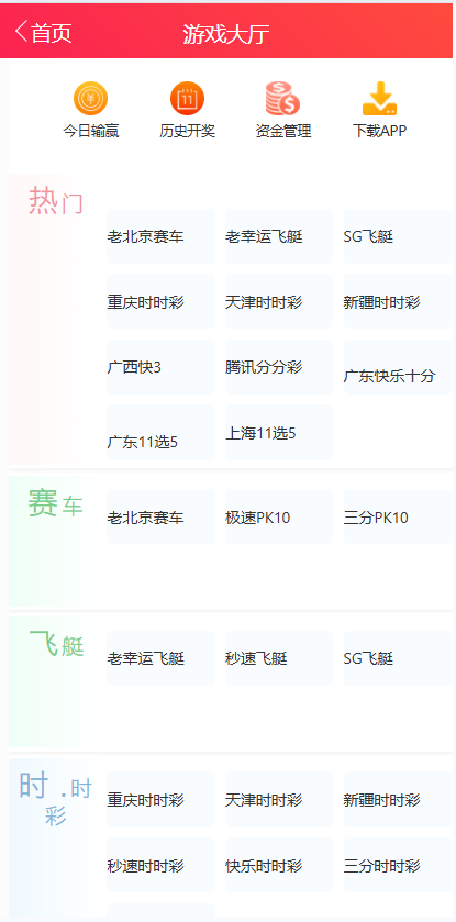 極速賽車 秒速飛艇 香港六合彩 北京快樂8 秒速28 快樂賽車 快樂飛艇 快樂時(shí)時(shí)彩 秒速賽車 秒速飛艇 老幸運(yùn)飛艇 SG飛艇 快樂飛艇 廣西快3 湖北快3 吉林快3 秒速快3 PC蛋蛋類游戲 PC蛋蛋 臺灣賓果28 秒速28 香港彩類游戲: 幸運(yùn)六合彩 香港六合